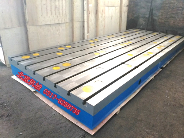 泊頭北重機械制造鑄鐵平臺適用于各種檢驗工作,用于機床機械測量基準,精密測量用的基準平面,檢查零件的尺寸精度或形位偏差,并作精密劃線。在機械制造中鑄鐵平臺是不可缺少的基本工具。